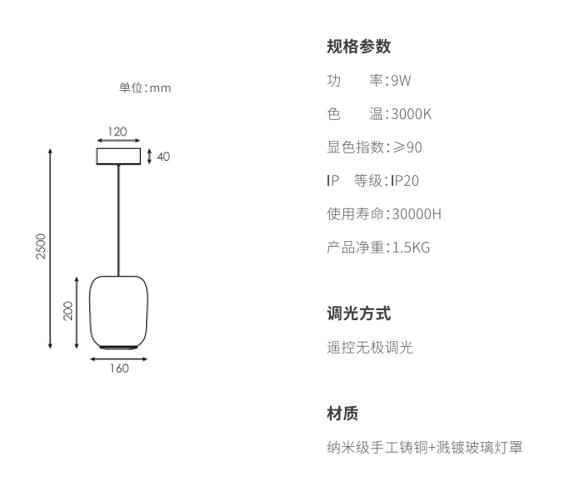 产品简介:手工吹制高硼硅玻璃,,,圆润柔和;在内部的上路光透过玫瑰金色网格铸铜件投射出类似烛火的效果,,,在空间里显得更加灵动,,,外层玻璃采用溅镀金属质感,,,,自下而上渐消,,同时镜面镀层折射环境光线,,,使产品更加轻盈通透不压抑,,下路光采用直下光,,,,满足1.5米圆桌面充足照明。。。同时设计有防眩格栅,,,桌面边缘的视线高度不会有直接光线照射到,,体验舒适。。。